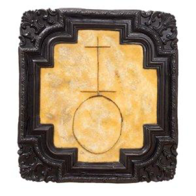 La exposición se presenta por separado en dos salas del edificio de la galería, en la primera se exhibe la serie de pinturas sobre la iconografía de la conquista organizadas en relación al término Encantamiento, y en la sala de abajo, la que parece un sótano, la historia de las carimbas con las que se identificaba cruelmente a las personas esclavizadas bajo el título antes mencionado: Recalcitrante. Contrario a la separación espacial propuesta por la curaduría, en el recorrido es posible interpretar que estos dos archivos visuales funcionan como el derecho y revés de una misma historia atravesándola de lado a lado, es decir, que las imágenes de las ilustraciones y crónicas que muchas veces hemos visto ahora revelan ese otro archivo expuesto en el piso inferior-intencionadamente no tan visible en la larga tradición de esas imágenes- de marcas y sangre hecho sobre la piel humana de los cuerpos africanos como signo de la aberrante y cruel cacería sufrida, aún en el continente negro, y posterior “travesía intermedia” (puerto africano-puerto americano[6]), a partir del siglo XVI y hasta bien entrado el siglo XIX.