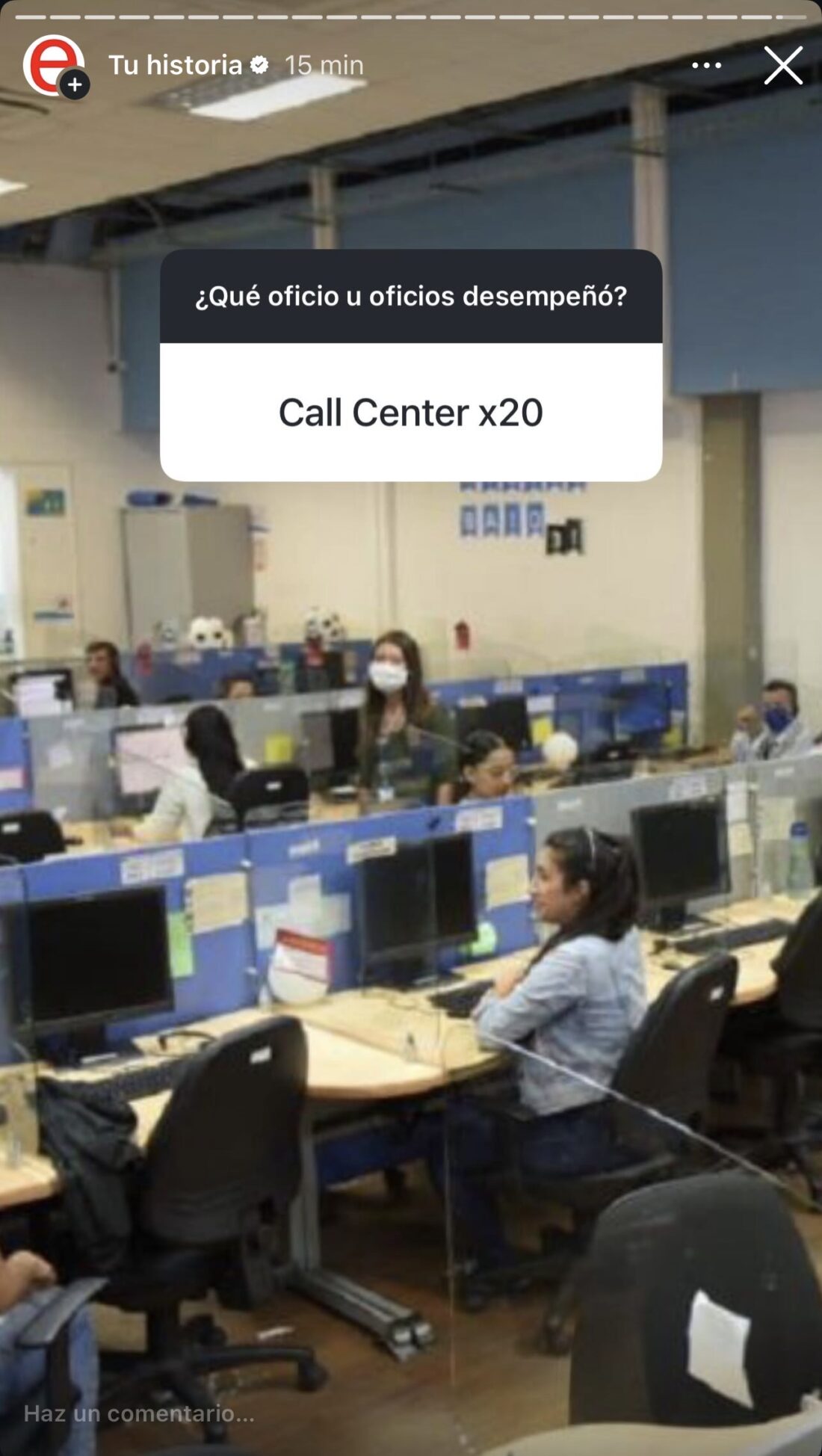 El call center, que en 2019 se nombraba sin comentario, en 2026 acumuló cuatro respuestas: «Call Center», «Puro Callcenter», «Seguimos en call center», «Call Center x20». La última es la más densa del grupo de sondeos No dice cuánto tiempo; dice cuántas veces. Veinte. El «x20» convierte el oficio en medida de repetición.